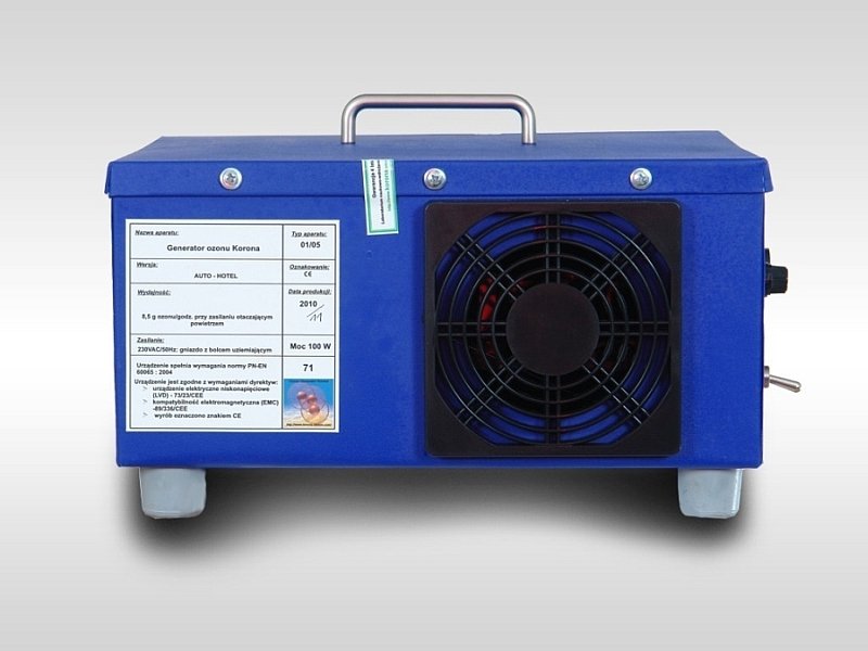 Wydajność ozonu - 2 - 5 g/h ( 2 000 - 5 000 mg/h); wydajność zależy od wilgotności, temperatury i czystości powietrza